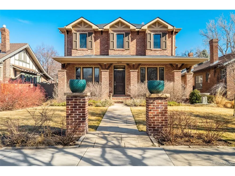 Located on a quiet block in Park Hill, this elegant five-bedroom, four-bath brick two-story blends classic charm with modern livability. The open kitchen anchors the main level with a large Quartz island, bar seating, six-burner gas range, and a well-appointed butler's pantry. The kitchen flows seamlessly into the great room which features a gas fireplace and fully retractable glass wall system that leads to the fully fenced backyard. Colorado outdoor living is enhanced by the covered deck, hot tub, outdoor shower, paver patio, and gas firepit, while mature perennial landscaping and garden planters create a private oasis. Complementing the main floor, a formal dining room and main-floor study with French doors add flexibility. Everyday function is elevated by the generous mudroom leading to the attached, two-car garage-complete with built-ins and access to a dog run. Upstairs, the spacious primary suite features a five-piece bath and dual walk-in closets. Across the hall are two additional bedrooms with a jack-and-jill bathroom, and a convenient laundry room. The finished basement offers a large recreation room, wet bar, two conforming bedrooms, a functional space for work or crafts, and a spacious storage and mechanical room. Thoughtful upgrades like remote-controlled window coverings, radon mitigation, a new 2024 furnace, plus easy access to neighborhood dining, shopping, and parks, complete this exceptional home.