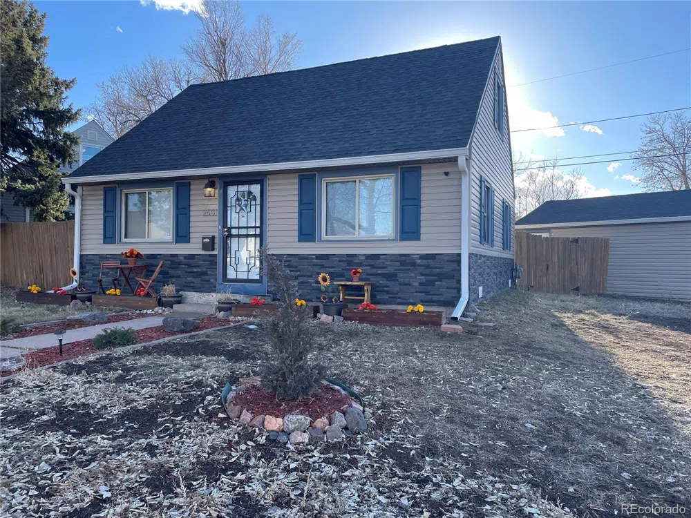 Welcome to this charming 4-bedroom, 1-bath home situated near Loretto Heights and Harvey Park. This 1950s gem on a corner double lot beautifully blends classic character with modern updates. The 2-story layout offers versatility, featuring 2 bedrooms on each floor. The updated kitchen shines with new electrical, floors, backsplash, lighting, back door and a custom liquor cabinet, complemented by a newer refrigerator, washer, and dryer. The refreshed bathroom boasts a new tub, flooring, electrical work, and more. Fresh interior paint brightens the space, while an oversized detached one-car garage offers convenience. Consider the potential for a second bath upstairs, as seen in neighboring home(s). Place your primary bedroom upstairs or downstairs. The upstairs sets up for a great office space that features hardwoods under the carpet. Outside, enjoy a fenced yard oasis, complete with raised planter beds and thoughtful landscaping. Experience enhanced comfort with new PEX indoor water pipes and an upgraded street to house Denver water supply line. This home/area qualifies for a possible interest rate reduction for buyers that qualify. Ask your Realtor for more info.