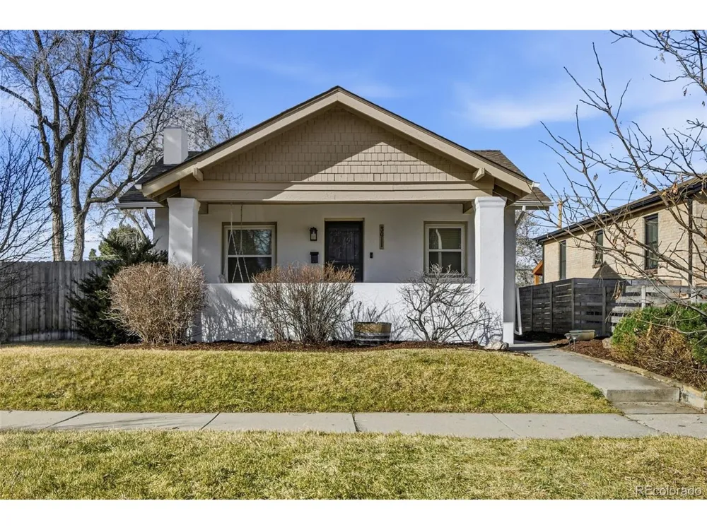 Step back in time while enjoying the comforts of today in this enchanting 1922 bungalow, perfectly situated on an expansive 6,280-square-foot lot in the heart of the Skyland neighborhood. From the moment you approach the welcoming front porch swing, you will feel the historic character that defines this residence. The interior flow is thoughtfully designed, offering distinct living and dining rooms that retain their original charm while catering to a modern lifestyle. The main level hosts two bright bedrooms and a convenient three-quarter bath, while the lower level serves as a private retreat featuring a primary suite with an en-suite bathroom and easy access to the laundry area. Storage is plentiful throughout, ensuring a place for everything. Significant recent investments provide peace of mind, including a furnace and central air conditioning system installed in 2020, updated windows, fresh LVP flooring, and plush new carpeting. Outside, the property truly shines with a newer two-car detached garage and a professionally installed sprinkler system. The backyard is a rare find, offering multiple vignettes for outdoor entertaining and a glimpse of the iconic Denver skyline. Location is everything, and this home puts you at the doorstep of the city's most beloved outdoor spaces. Enjoy unparalleled proximity to the City Park Golf Course, tennis courts, the Denver Zoo, and the Museum of Nature and Science. This is more than a home; it is an invitation to a vibrant lifestyle in one of Denver's most sought-after areas.