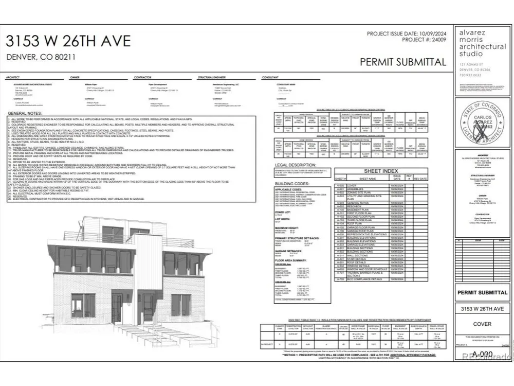 Developed by Bill Piper of Piper Development, an award-winning builder with over 40 years of experience delivering luxury residences throughout the Denver area. The neighboring unit at 3155 W 26th Avenue is also available. Home is currently under construction, offering buyers the opportunity to customize select finishes with an early purchase. Located minutes from Sloan's Lake and NW Denver dining and entertainment. Situated on an elevated 173' deep lot in the heart of Sloan's Lake, this expansive duplex offers over 4,000 square feet of living space-among the largest in NW Denver. The main level features 10' ceilings, 8' doors, oversized south-facing windows, and a bright living area with a gas fireplace. The kitchen is designed for both function and entertaining, with a quartz waterfall island, six-burner Verona gas range, stainless steel appliances, and a dedicated dining area that opens to outdoor space. A mudroom provides direct access to an oversized detached garage with 16' ceilings, ideal for installing car lifts to maximize vehicle storage. The upper level includes a spacious primary suite with a second gas fireplace, south-facing windows, and a five-piece bath with a custom stone shower and dual controls. Walk-in closets with built-ins are featured throughout, along with a conveniently located laundry closet between bedrooms. The lower level offers 10' ceilings, two large bedrooms, a shared bath, and a generous great room with a full wet bar. The third floor includes a flexible living space with a half bath and built-in bar, opening to two rooftop terraces-one north-facing with a Nordic hot tub and one south-facing with city and mountain views. Buyers still have time to choose all of their finishes. Come customize your new home!