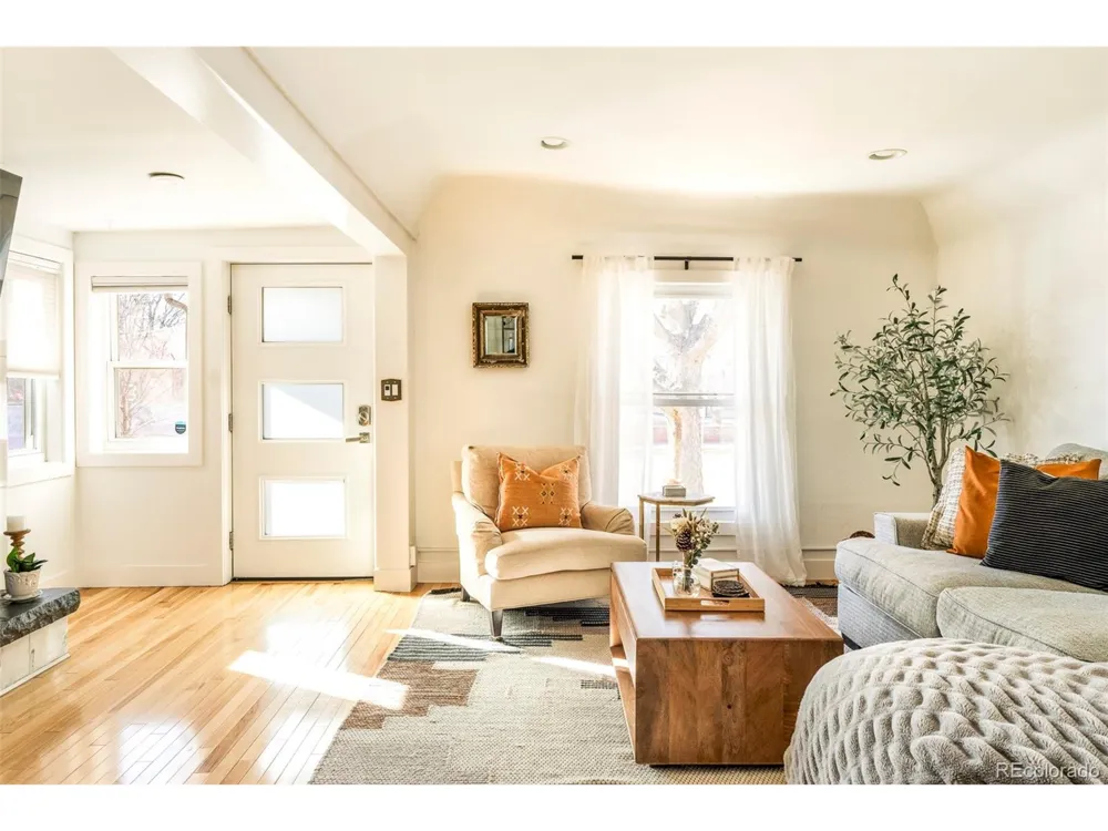 Classic charm meets city sophistication in this thoughtfully updated LoHi bungalow. A cozy entryway nook sets the tone, drawing residents into a striking living space anchored by a dramatic floor-to-ceiling marble fireplace. Hardwood floors flow seamlessly through the open-concept layout, illuminated by recessed lighting and enhanced by tall ceilings that amplify the home's airy feel. The kitchen impresses with stainless steel appliances, a classic tile backsplash and rich cabinetry. Two spacious main-floor bedrooms present the potential for one to be used as a home office or walk-in closet. A beautifully updated full bath is adorned with designer details. The lower level hosts a third bedroom, a 3/4 bath with a walk-in shower and flexible living space ideal for guests or relaxation. Outdoors, a fenced backyard oasis awaits, designed for entertaining with a private patio and raised garden beds. Residents enjoy a coveted location just moments from LoHi's vibrant dining, shops and nightlife.
