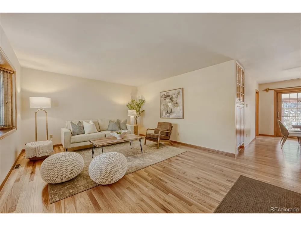 If you're tired of walking through white-on-gray remodels, where everything looks new but nothing feels solid - this impeccably maintained Hutchinson Hills home is exactly what you've been waiting for. Quality & pride of ownership are evident throughout, from the real hardwood floors to the solid-core doors that create a home that feels substantial, warm & enduring. The main level offers generous living & dining spaces & a spacious kitchen w/ thoughtful upgrades- featuring quality maple cabinetry, granite tops, stainless appliances & direct access to the deck. And the best part? You can't see the dirty dishes from the family room. Three bedrooms & two upgraded bathrooms are located on this level, including a spa-like renovated hall bath with a zero-entry roll-in shower. The front bedroom is currently styled as a private office with French doors & a closet, offering flexible use. The primary bedroom suite serves as a calm retreat with a private bath.The finished basement expands the home's livability w/ 2 additional bright conforming bedrooms w/daylight windows, a flex room & a spacious family room anchored by a cozy brick fireplace-creating an ideal layout for multi-generational living, guests, or work-from-home flexibility. Large laundry room with a walk-in storage room adds both function & comfort. Major systems have been proactively maintained, with furnace, AC & hot water heater replaced in 2020. The extra-deep garage includes built-in shelving for additional storage & features a new overhead door and opener. Outside, the backyard offers privacy with mature trees and vibrant seasonal flowers. The covered deck + large patio provide space for gatherings of 1-100 and room to enjoy Colorado's outdoors year-round. Don't miss the charming detached studio-ideal for a playhouse, craft room, potting shed, or workshop. Located just minutes from Rosamond Park, DTC & Cherry Creek Reservoir, with easy access to Downtown, Buckley Air Force Base, Light Rail, I-25, and I-225.